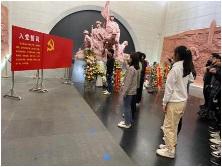 4月1日下午,地球科学学院组织全体本科学生党员来到江西革命烈士纪念堂,在庄严肃穆的纪念堂大厅重温入党誓词,缅怀为民族独立、国家富强、人民幸福而英勇献身的无数革命先烈。随后,师生们在展厅内认真学习了革命先烈不畏流血牺牲、艰苦奋斗的革命事迹。参观完展厅后,支部书记龚恬珂在纪念堂前广场组织同学们开展小组讨论,积极分享此次党史实践教学的学习感悟。大家纷纷表示通过这次学习,深刻的认识到了如今幸福生活的来之不易。
