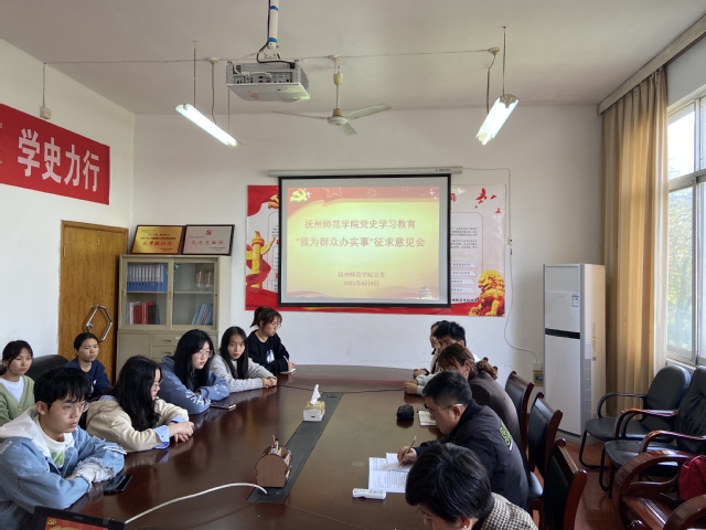 4月9日下午,师范学院在抚州校区学府校园339会议室组织学生代表召开“我为群众办实事”征求意见座谈会。学院党委书记章国平、辅导员代表、各专业学生代表及相关人员参加座谈会,会议由院党委副书记江汶俊主持。