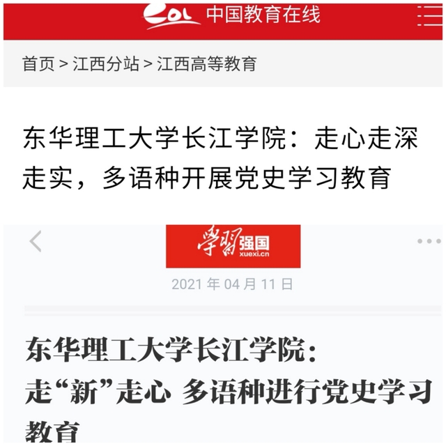 学习强国、中国教育在线、江西新闻、魅力抚州等多家主流媒体深入报道我系这种走“新”更走“心”的党史学习教育形式。