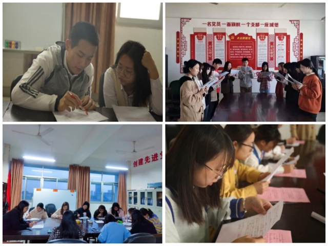 支部党员师生选取党史学习原著《共产党宣言》《中国共产党简史》,进行文本翻译,支部书记从翻译技巧、朗读发音、词汇语法等方面给予支部党员学生指导,学生之间进行翻译、诵读方面的切磋交流,每周二的支部学习日上进行中、英、日三语诵读。目前,共翻译万余字文本,举行了四轮诵读活动,60余人次参与。