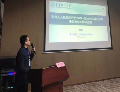 刘诚博士在大气边界层物理与大气环境分会场作了题为《利用无人机观测评估WRF-Chem对边界层PM2.5垂直分布的模拟效果》的报告,利用一次重污染过程中获得的PM2.5垂直观测资料评估了当前广泛使用的空气质量模式的模拟预报能力,发现当前模式的偏差主要在夜间。通过改进边界层参数化方案,提出了改善夜间PM2.5模拟的一些建议。与会者对这一先进科技在大气理论研究中的应用积极提问讨论。