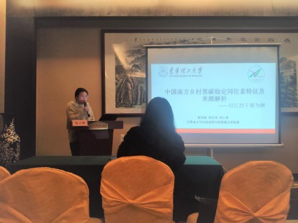 黄莉磊报告题目《中国南方乡村黑碳稳定同位素特征及来源解析——以江西于都为例》,通过测定分析了PM2.5中水溶性离子和黑碳浓度及同位素,并结合后向轨迹和贝叶斯稳定同位素混合模型解释了中国南方乡村冬夏季来源分配,冬夏季主要以生物质燃烧和机动车尾气为主。对乡村黑碳的观测有利于发现人为污染源对城市大气颗粒物的影响程度,以便为大气治理提供理论依据。这一研究得到了与会专家的肯定。