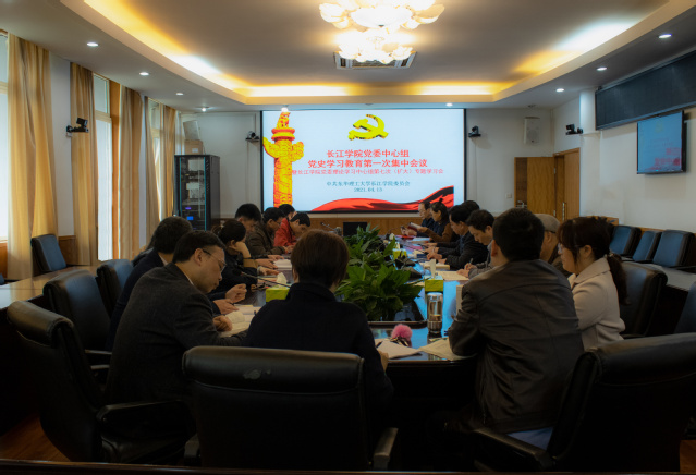 4月13日上午10:00,长江学院党委在行政楼三楼会议室召开党史学习教育第一次集中学习暨2021年党委理论学习中心组第7次学习会。学院班子成员、党委委员、党政办公室正、副主任、教师工作部办公室主任、各系书记和主任、直属支部书记、学生科科长、团委书记、组织员参加学习,会议由学院党委书记陈泉水主持。
