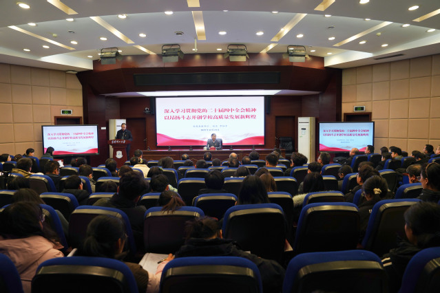 罗仙平以《深入学习贯彻党的二十届四中全会精神以昂扬斗志开创学校高质量发展新辉煌》为题,从深刻领会党的二十届四中全会的重大意义、准确把握“十五五”时期在基本实现社会主义现代化进程中的重要地位、深刻领会“十五五”时期经济社会发展的指导方针和主要目标、全面理解“十五五”时期经济社会发展的战略任务和重大举措、深刻领会坚持和加强党的全面领导是推进中国式现代化的根本保证、贯彻落实全会精神要着重把握的重点等六个方面对全会精神进行系统宣讲和深入阐释。