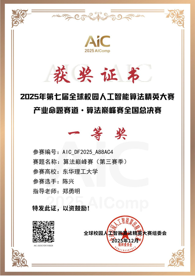 近日,第七届全球校园人工智能算法精英大赛全国总决赛圆满收官。东华理工大学选派地球物理与空间探测学院、电子与电气工程学院、软件学院的多支团队参赛,在激烈角逐中脱颖而出,共斩获一等奖4项、二等奖6项、三等奖10项,获奖总数与质量均创历史新高。