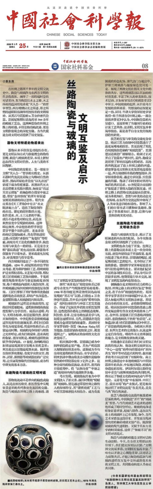 编者按:3月25日,《中国社会科学报》刊载东华理工大学马克思主义学院副教授蔡东伟署名文章《丝路陶瓷与玻璃的文明互鉴及启示》,引发社会广泛关注。现将原文转载如下:
