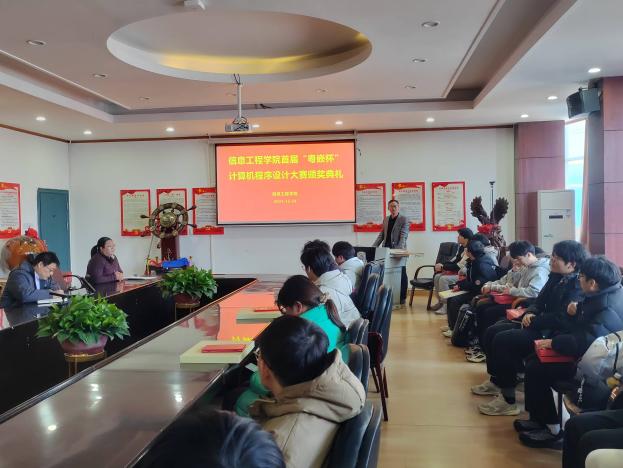 12月24日,颁奖典礼在软件楼316会议室隆重举行。信息工程学院党委书记王平风、院长何剑锋、党委副书记陈晓、副院长张军、钟国韵和获奖学生出席了颁奖典礼。何剑锋作了总结发言,对广州粤嵌通信科技股份有限公司的大力支持表示衷心感谢,对学生取得的成绩表示祝贺,并高度赞扬了参赛选手们在比赛中展现出的专业素养,并期待学生在以后的比赛取得更好的成绩,为学院争光。