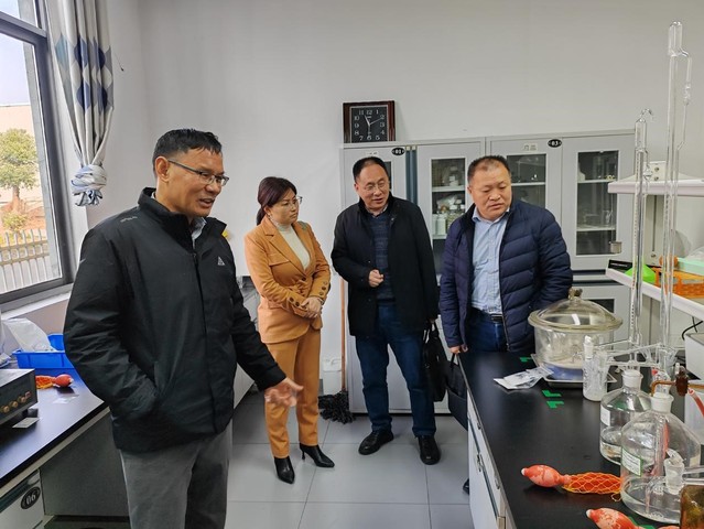 仪式结束后,马建国一行人参观了公司实验室和生产车间,了解了公司的实验和生产仪器设备等基础设施。看望了在大信科技有限公司工作的我院毕业生胡绍纲、王义洪和朱丽等,了解了他们在公司的工作情况,鼓励他们继续在岗学习,实现自我价值,为社会做出更大的贡献。