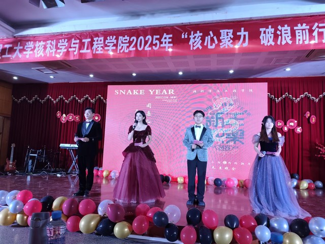 12月27日晚,核科学与工程学院“核心聚力 乘风破浪”2025年元旦晚会在软件楼四楼报告厅举行。学院党委书记张怀强、原党委书记余斌、原院长刘义保、党委副书记刘顺祥、副院长魏强林,校科技处副处长杨波与400余名师生代表欢聚一堂,共迎新年。