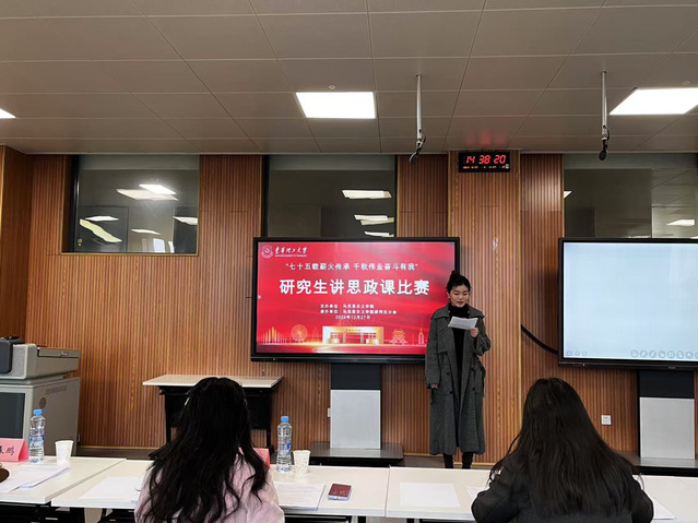 12月27日下午,由马克思主义学院举办、马克思主义学院研究生分会承办的“七十五载薪火传承 千秋伟业奋斗有我”研究生讲思政课比赛在四教320落下帷幕。学院党委副书记欧阳霞到现场指导,南昌大学马克思主义学院皮艳清教授等校内外专家受邀担任比赛评委。