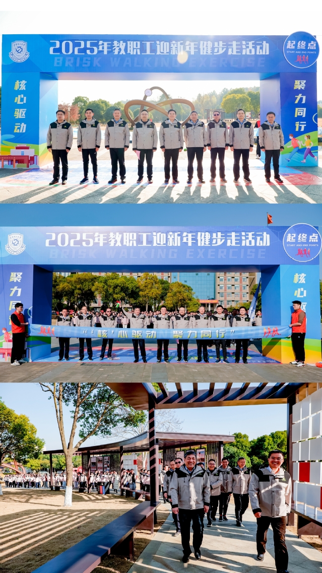 12月31日下午,东华理工大学2025年“‘核’心驱动 聚力同行”教职工迎新年健步走活动在南昌、抚州两校区同步启动。校党委书记张福庆出席并致辞,校党委副书记、校长罗仙平宣布活动启动,校党委副书记邱建丁主持启动仪式。校党委常委、副校长杨波、熊国保、李满根、邓居智,校党委常委张立亭、金建华出席,来自全校25个分工会的600余名教职工参加。