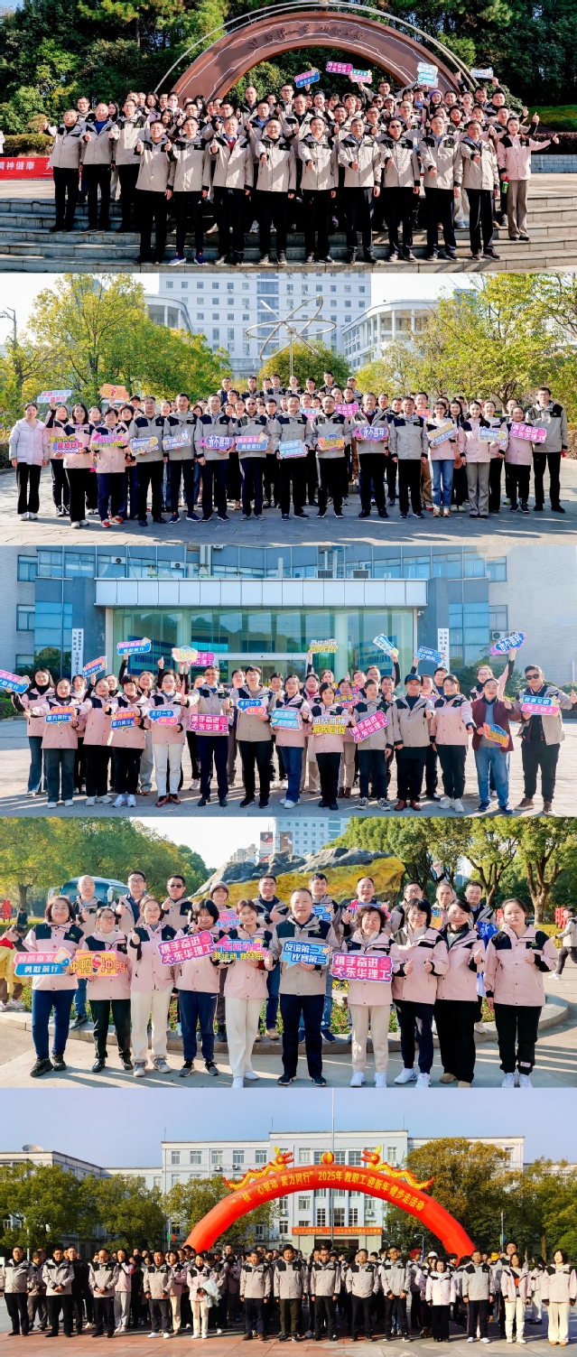 在南昌校区,学校党政领导班子带领教职工从国旗广场出发,沿核军工文化长廊、功勋文化墙、核工魂、国家重点实验室、地质博物馆(校史馆)、开业之石,最后到达“伟大的决策”故事浮雕。在抚州校区,教职工从蘑菇云广场出发,途径震旦楼、人民公园、汤显祖之墓、九曲桥,到达原子能雕塑。让教职工在健身的同时,沉浸式体验东华理工大学核军工文化的丰富内涵。