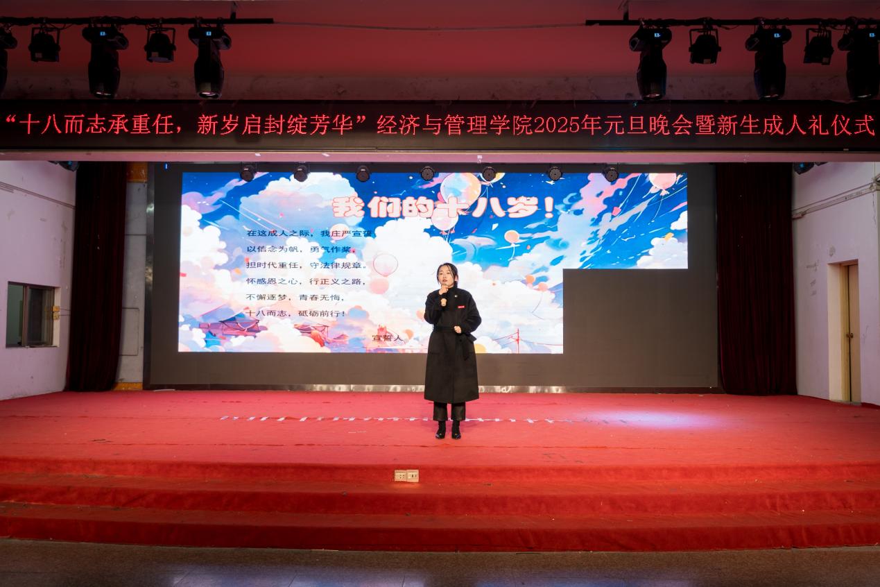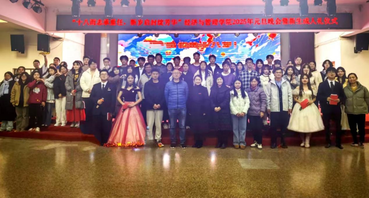 12月27日,经济与管理学院在抚州学府校园大学生活动中心举办2025年元旦晚会暨成人礼仪式。学院党委副书记罗梦悦和抚州校区全体师生齐聚一堂,共同庆祝元旦佳节的到来。