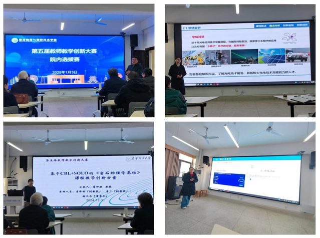 桃李园中才俊聚,三尺讲台竞风流。2025年1月3日上午,为增强教师在教学竞赛中的竞争力,学院在地学楼A509举办教学创新大赛院内选拔赛。本次比赛由学院副院长陈辉主持,其他任课教师现场观摩。