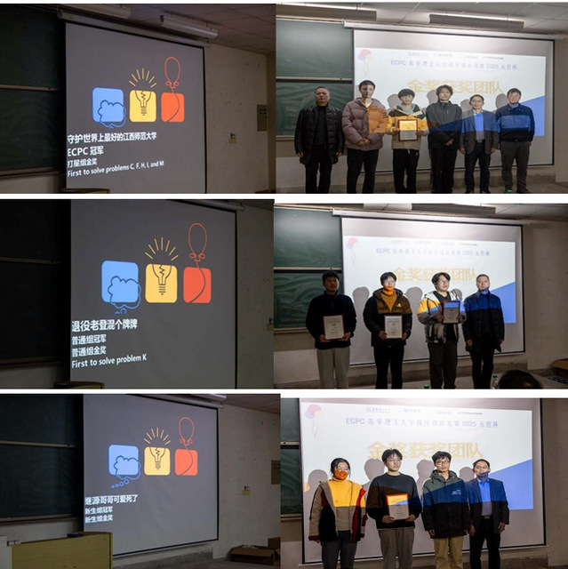 经过数小时的紧张编程和调试,最终由来自江西师范大学的队伍获得打星组冠军,同时也是本次所有队伍中的冠军。软件学院相关队伍获得普通组冠军和新生组冠军。