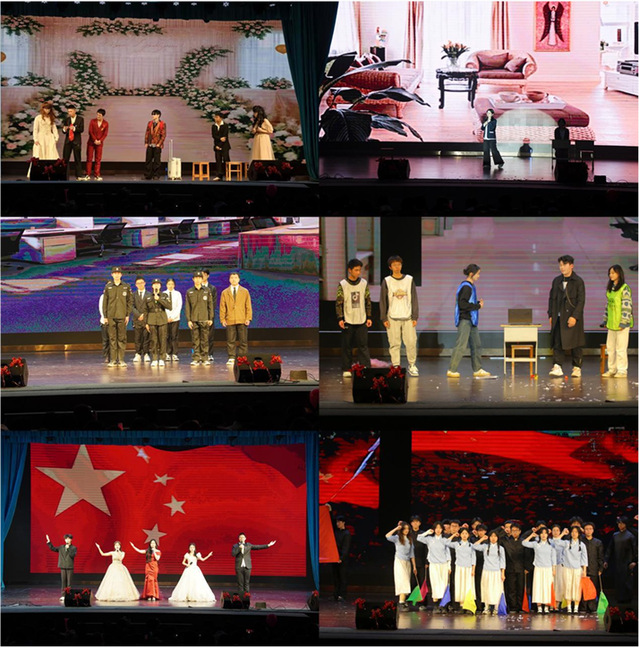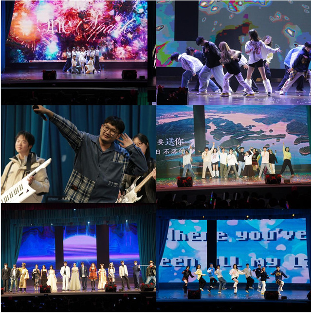 晚会以“蜕变·新生”为主题拉开了序幕,乐队的暖场表演瞬间点燃了现场的气氛。随后,一支充满活力与激情的舞蹈《ONE SPARK》震撼登场,舞者们用他们精湛的舞技和默契的配合,为观众们带来了一场视觉上的冲击;紧接着,配音秀《以声绘梦》以其独特的表演形式,让现场观众仿佛置身于一个个梦幻的世界中,感受到了声音的魅力;朗诵《点亮梦想,照耀中国》用其深情而激昂的声音,表达了同学们对祖国的热爱和对未来的憧憬;小品《乍一看很好骗》以其幽默诙谐的表演,让观众在欢笑中反思了生活中的种种陷阱与诱惑;心理情景剧《抑·愈》则以其深刻的主题和真实的表演,引发了观众对心理健康问题的关注与思考;小品《时间都去哪了》更是让人们在笑声中感受到了时间的流逝与珍贵;舞蹈《Hello》则以欢快的节奏和充满活力的表演,表达对新年的期待;随着歌曲串烧《新年·奔赴热爱》的响起,晚会缓缓落下帷幕,但同学们的热情与梦想却永远不会熄灭。
