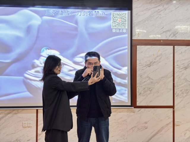 联欢会穿插了互动游戏和抽奖环节,现场气氛热烈非凡,惊喜连连。看图片猜台词、看图片猜成语、蒙眼喂香蕉等游戏让大家笑声不断,参与热情高涨。